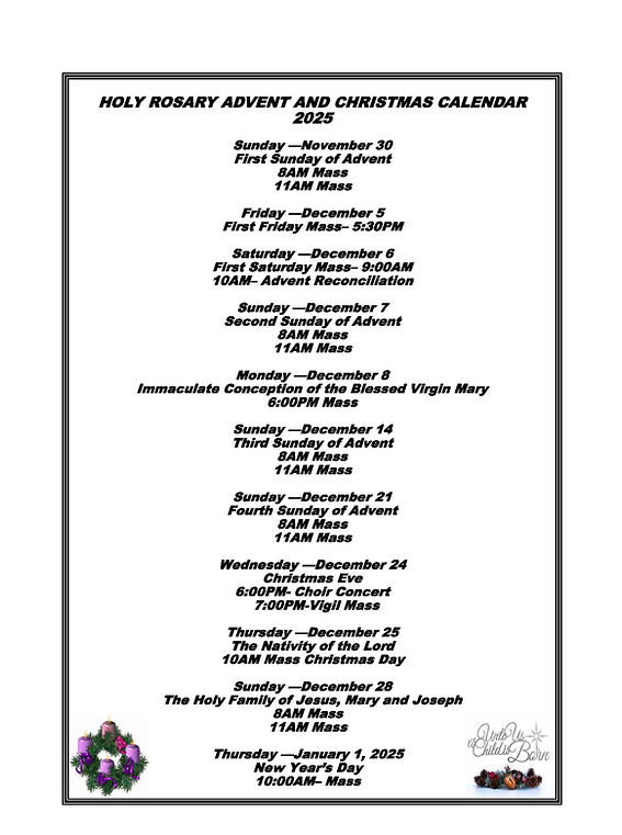 Holy Rosary, we ask that you complete a registration form and send it to the parish office or drop it off at the parish office.