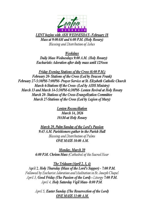 LITURGICAL SCHEDULE
